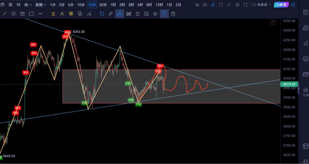 不看大周期,只盯15分钟线。