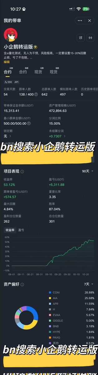 2. Bn搜索“小企鹅转运版”或自己开个跟单