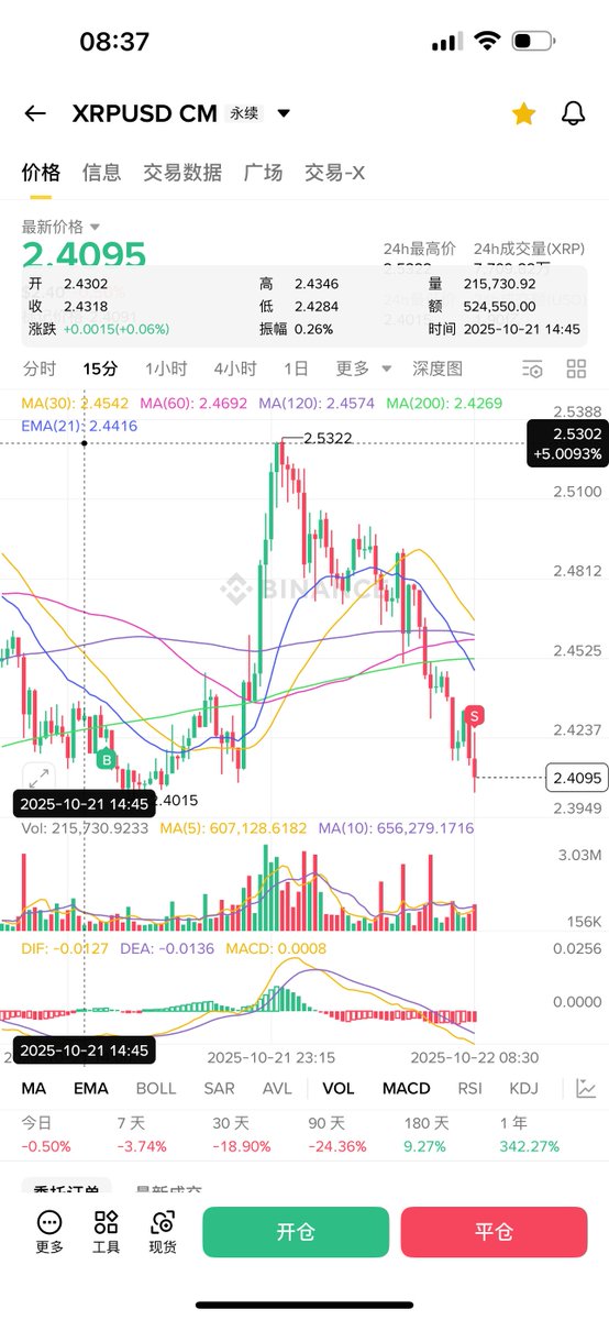 手里的大主流昨天 $xrp 表现还可以,一些小币反弹力度也还行。