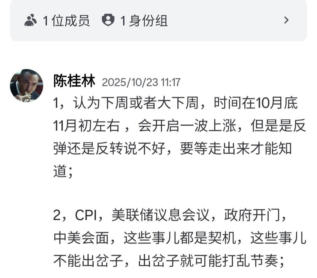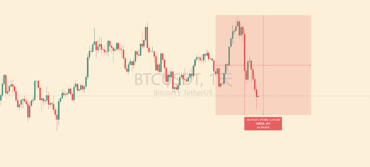 2,这种周级别调整的走法,要么给时间要么给空间,就算10月11日这次大清理,目前大饼从最高点的下跌幅度也只有20%,远未达到之前深度调整的幅度,也就是30%(2024年3-8月调整---2025年2-4月调整);