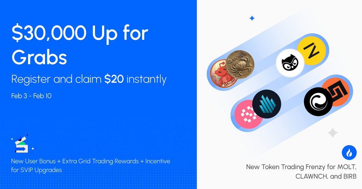 交易 MOLT、CLAWNCH、BIRB 即可分享 30,000 美元的奖励。