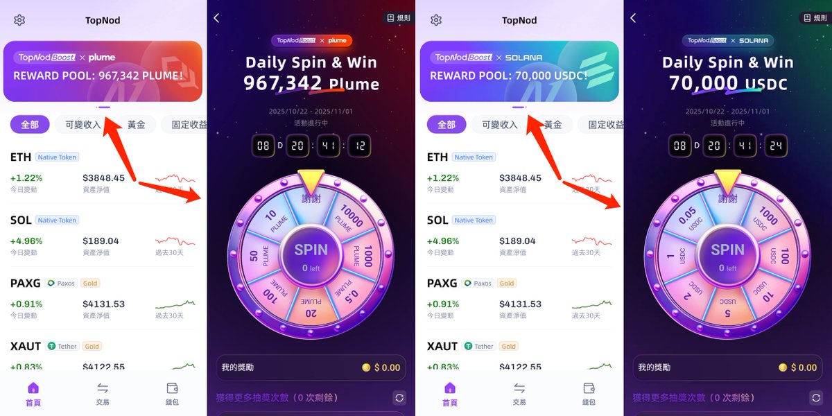 4⃣步骤四、钱包首页有两个活动,PLUME池和SOL池(一共15万美元奖励),点进去完成任务。