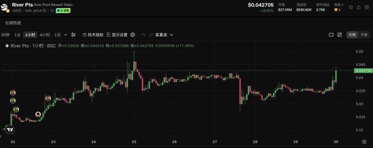 很多人因为错过 @RiverdotInc 懊恼,因为River Pts涨了4300%。当时随便嘴几句,也有几万U的收入。