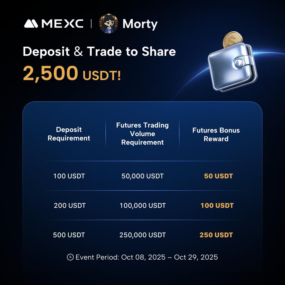 🚀 Trade Futures. Earn Bonuses! 💰 Up to 250 USDT waiting for you! 🎯 🔹 100 USDT dep. + 50K trades = 50 USDT 🔹 200 USDT dep. + 100K trades = 100 USDT 🔹 500 USDT dep. + 250K trades = 250 USDT 🗓 Oct 8–29 🔥 Claim now: https://t.co/BrqzabgpHH… #MEXC #CryptoBonuses
