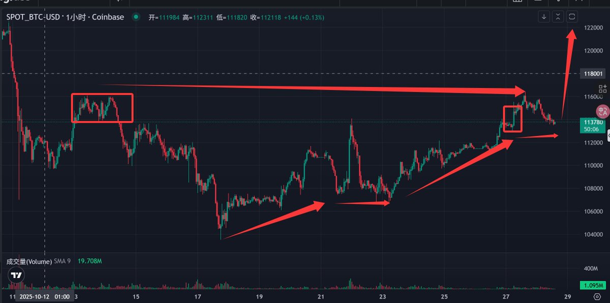 之前我们在大群多次说过 117000这个点,昨天是突破上次川普玩人行情的 1155000直接从113000-1165000的,然后摸到大跌之后最大阻力位(117000)回撤。 这里会再次形成一次上攻,上攻117000过了,多头才是真正安全之地。