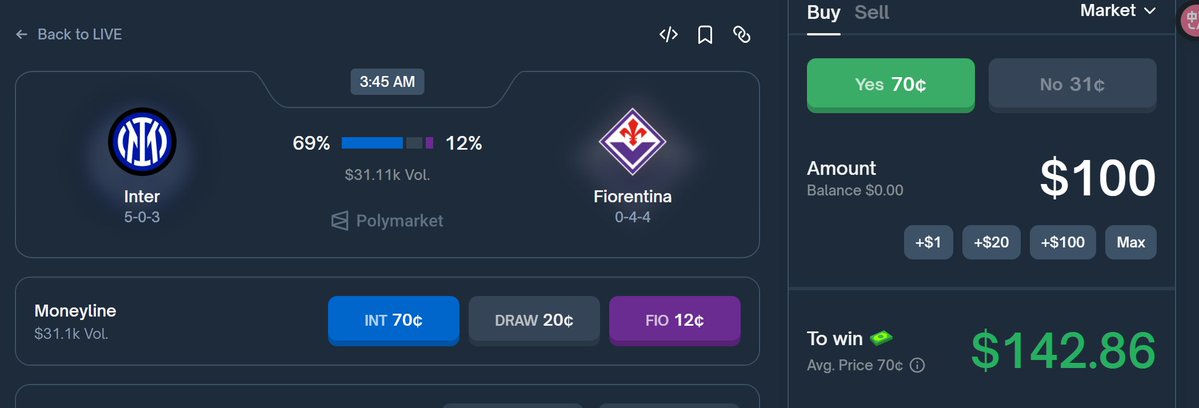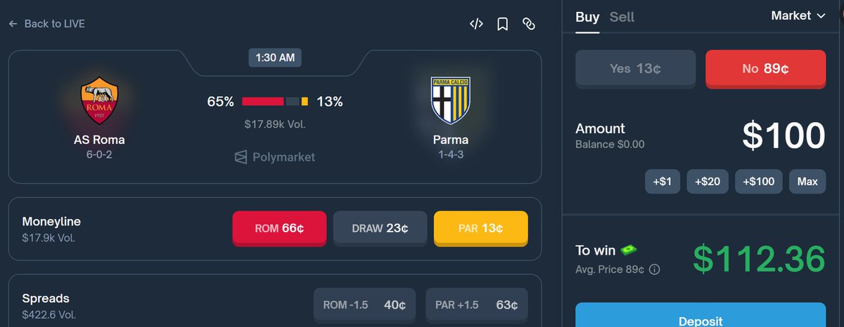 预测市场 足球板块 ①罗马VS帕尔马 激进 :罗马yse 50% 稳健:帕尔马 NO 12% ②洛里昂VS大巴黎 激进:巴黎 YSE 25% 稳健:洛里昂 NO 7.5% 今天都是盘前场:https://t.co/8tQhG05VAJ https://t.co/NYYi7T2zBu