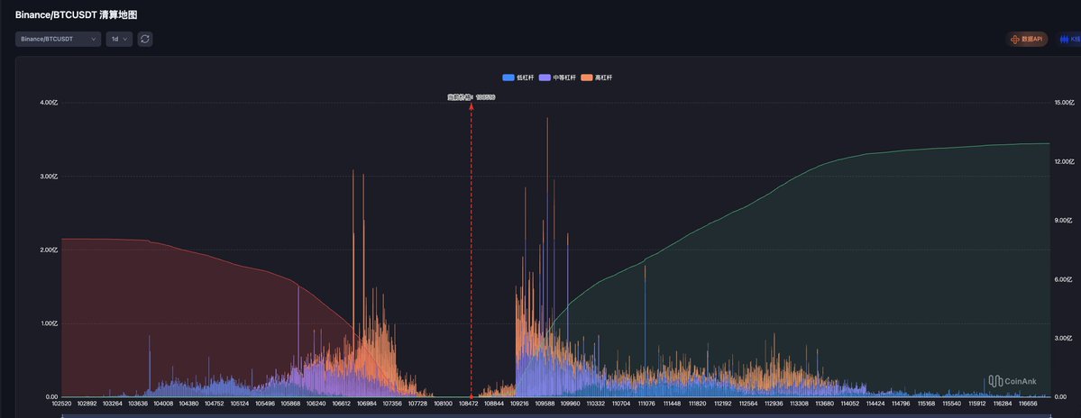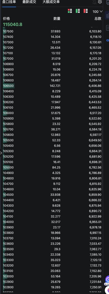不过大家可以留意下订单薄, 我截图的是币安合约, 只要不到5000 个币就能砸到107 , 7000多个币就能看到9 开头。