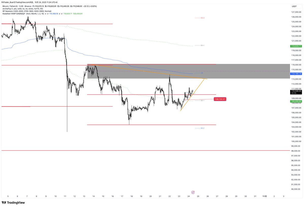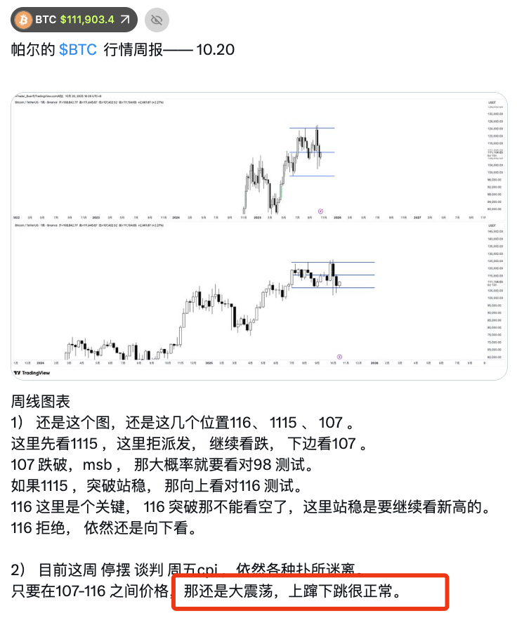 只要在107-116 之间价格,那还是大震荡,上蹿下跳很正常。