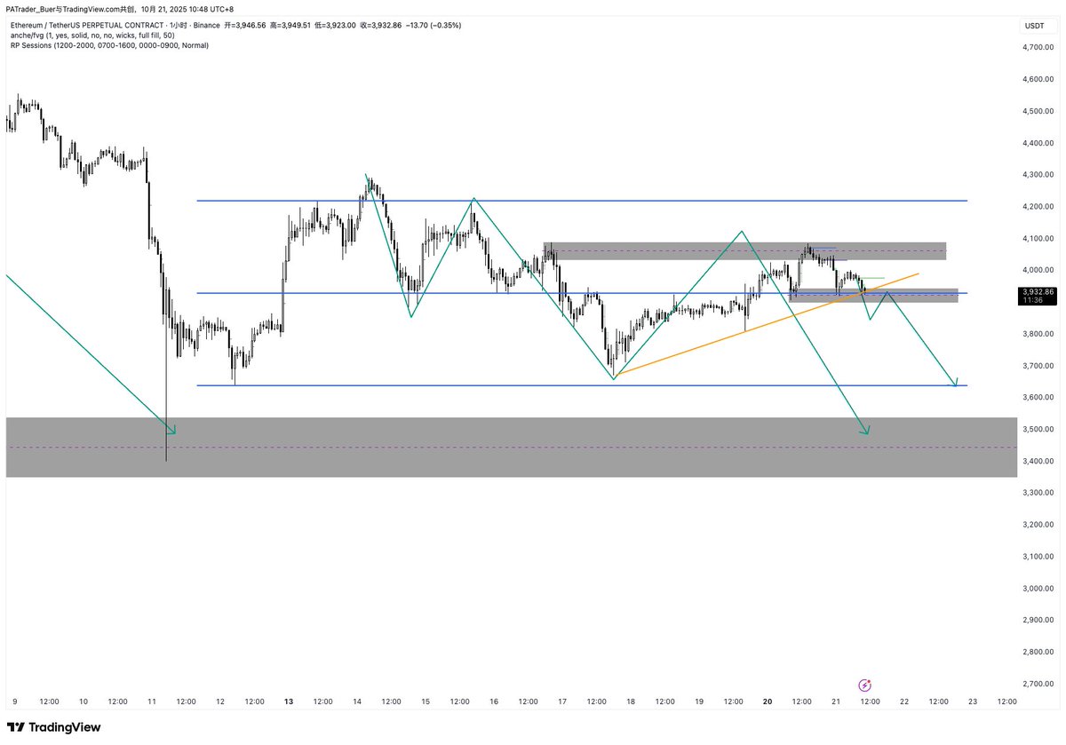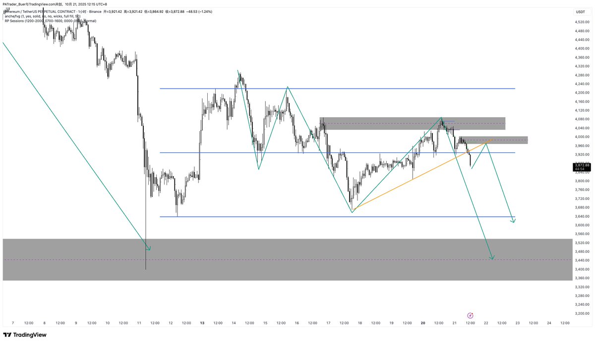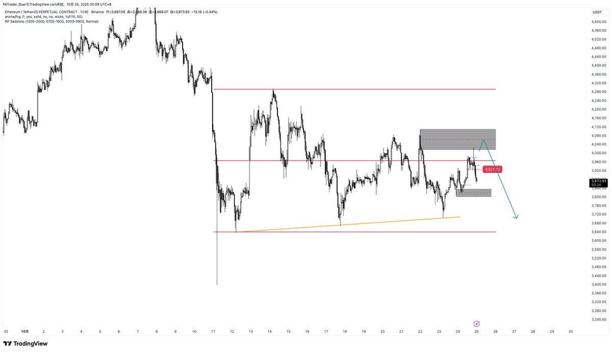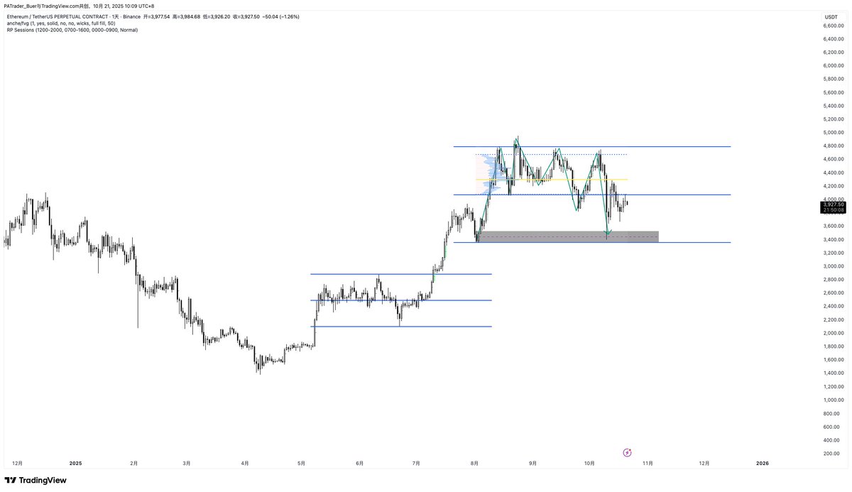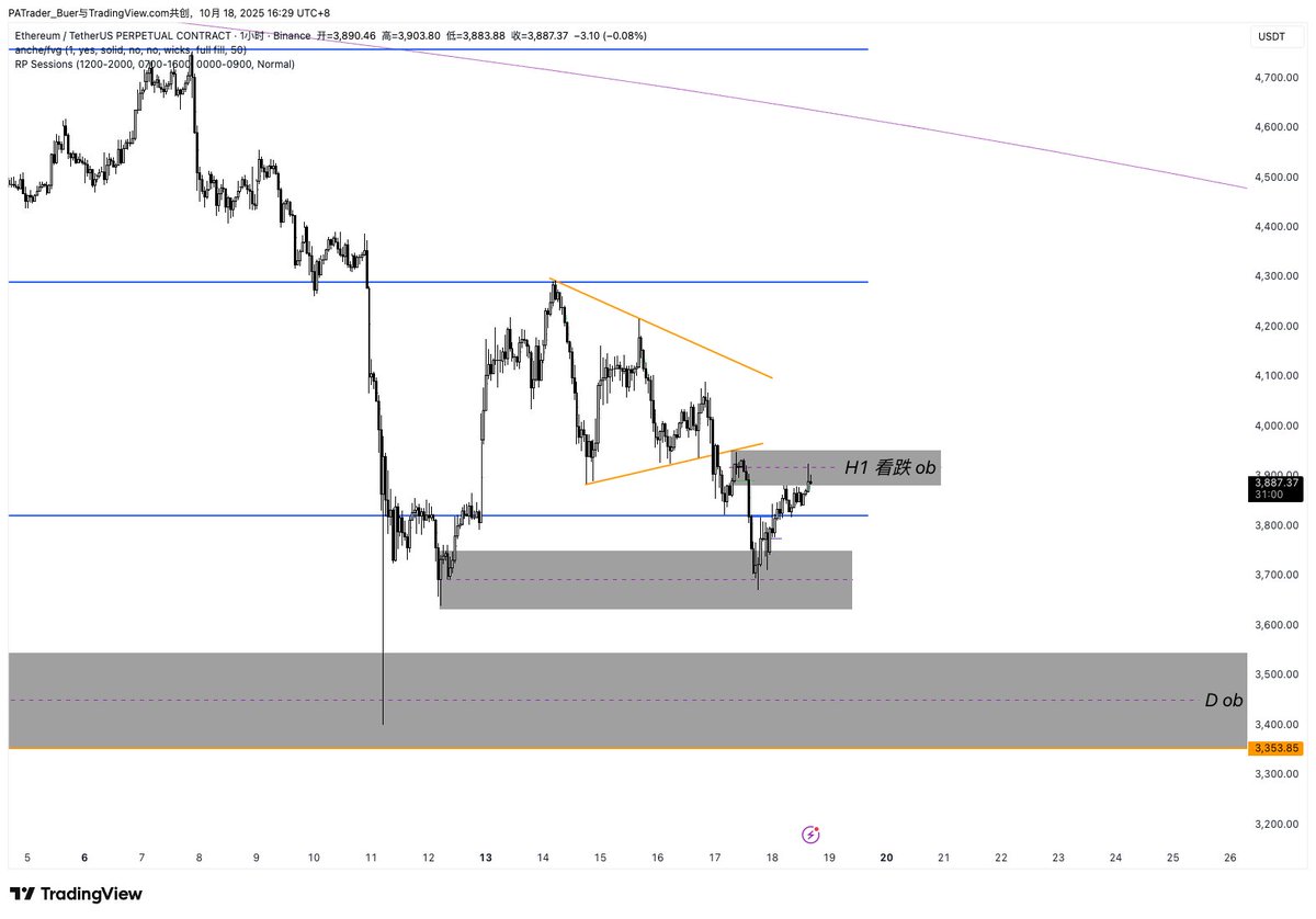 然后这里3890 就是关键, 这里跌破,那下方idm 流动性 都要获取了, range——L 也要继续测试。