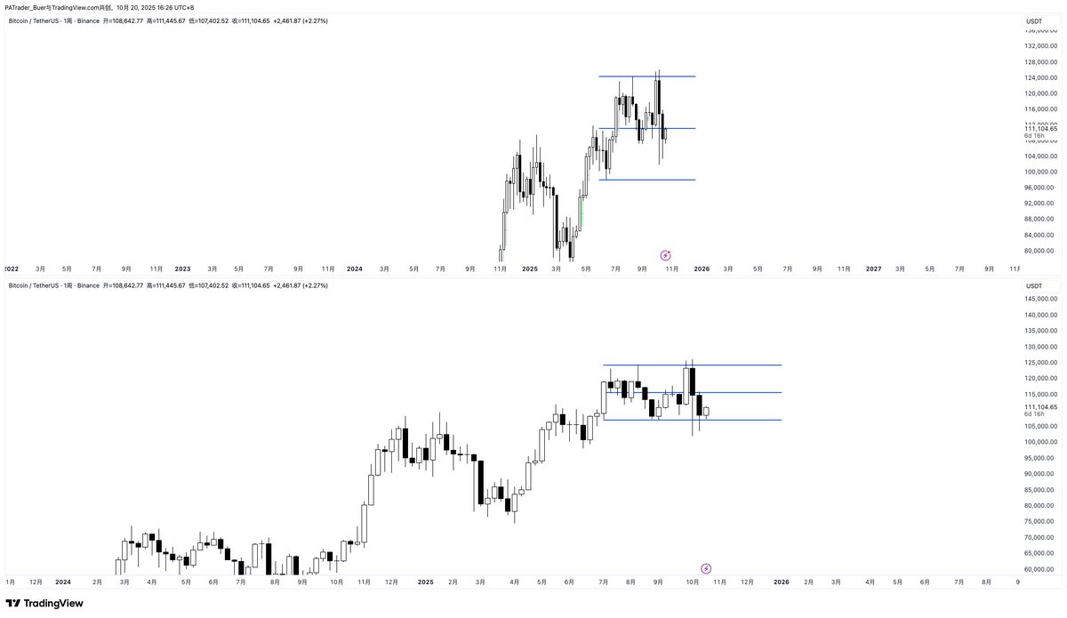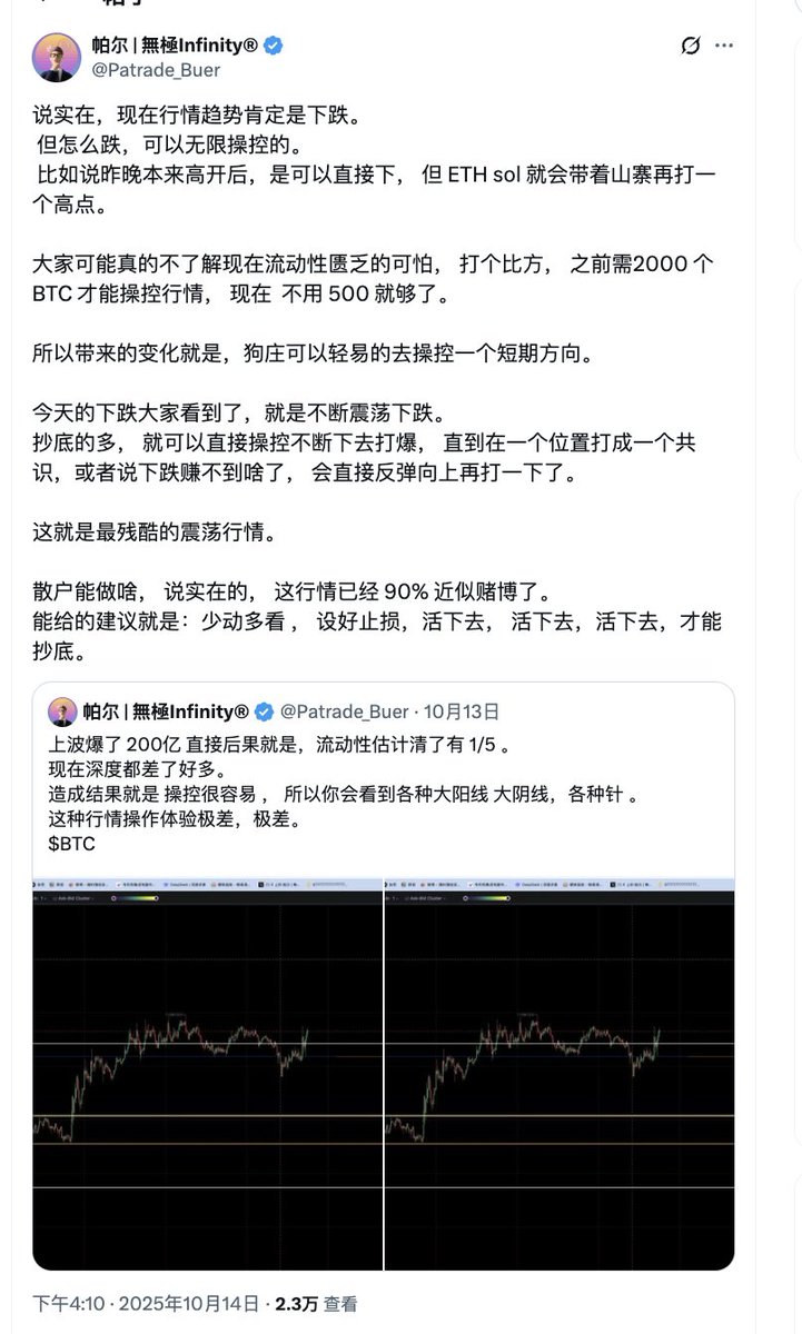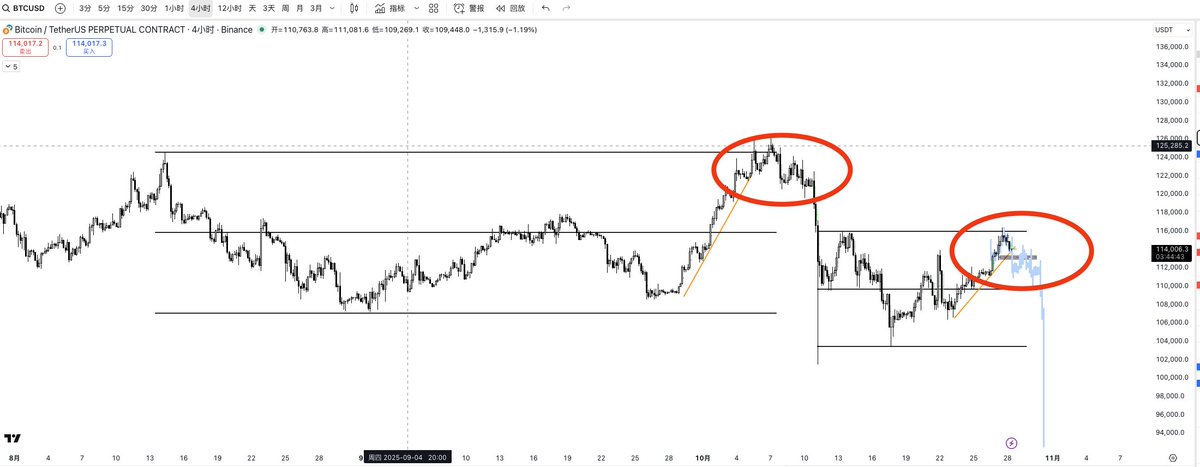 这里就是不断震荡, 让你只能做短线, 然后某一天直接下去掠夺,所以某一天直接跌倒10W以下,一定不要奇怪。
