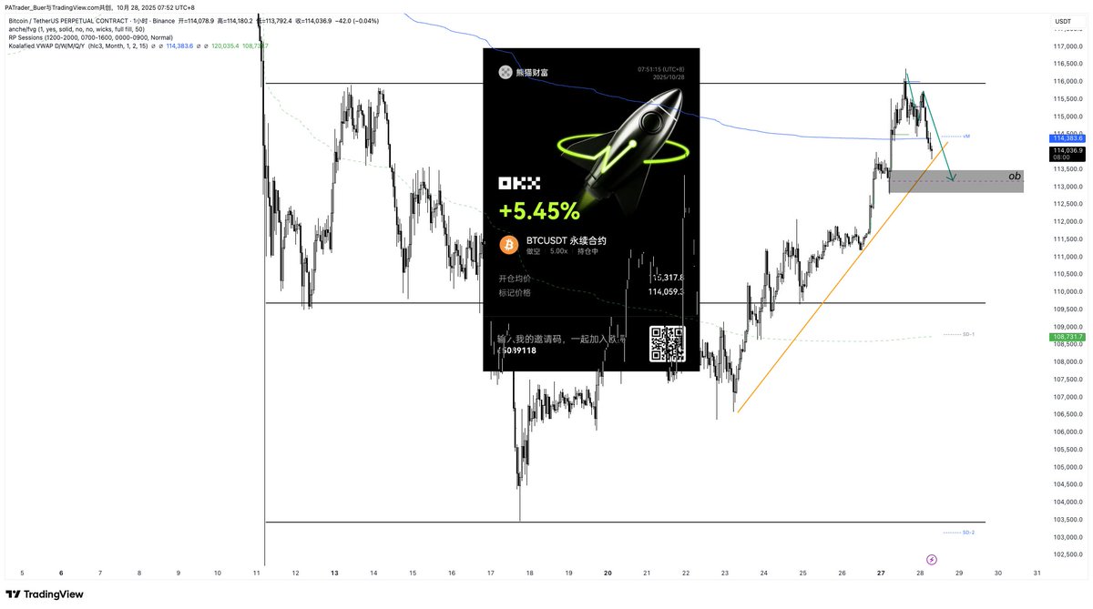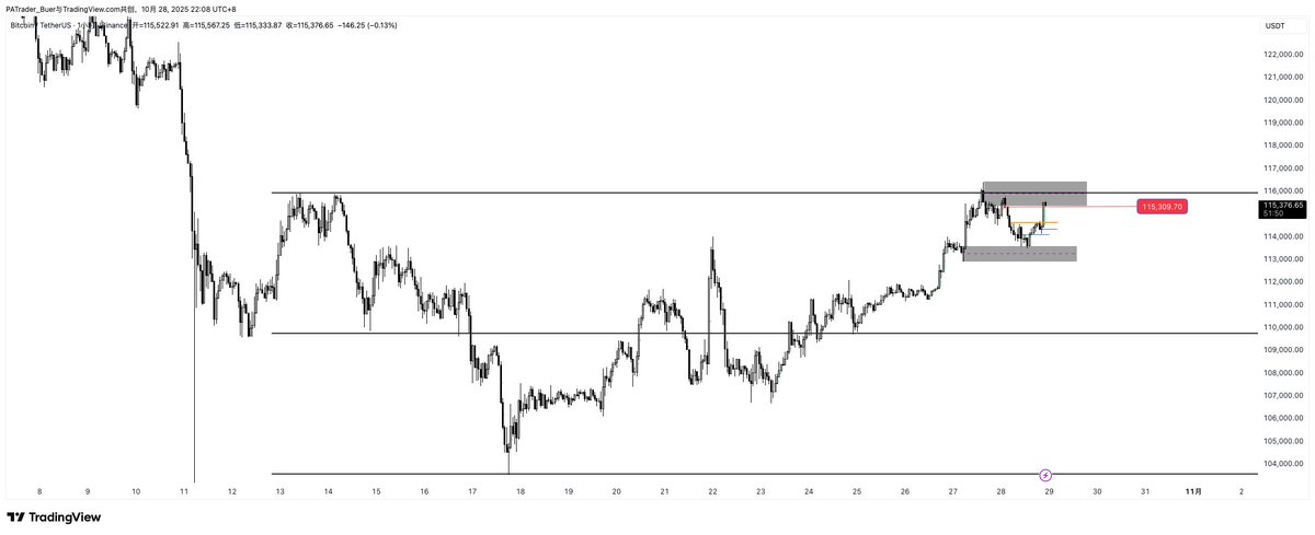 我还是保持看法,116 D 看跌ob 突破不了,就是看跌。
