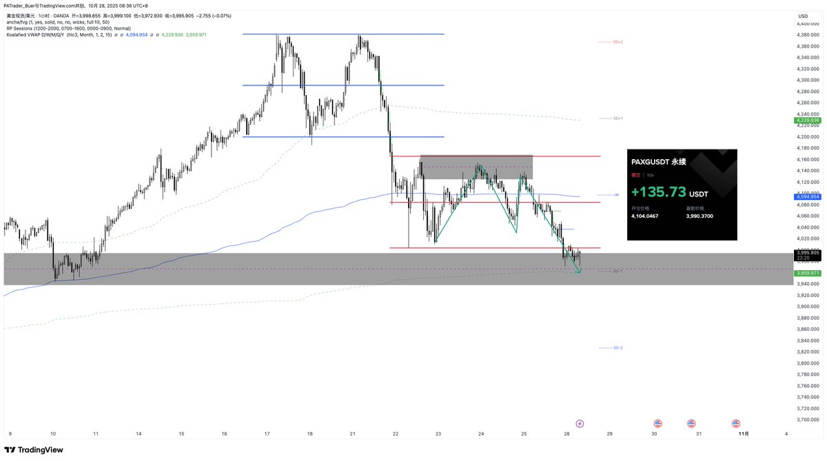 但注意,如果跌破1074 ,那小时级别msb ,上涨就破坏了,要继续看空了。