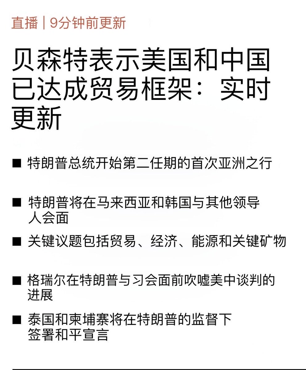 目前仍为框架或初步共识并非全部条款都已公开或最终定稿。但已经可以看到中美贸易关系有缓和的趋势,所以市场给出很直接的反应,美国三大股指期货开盘都在上涨。