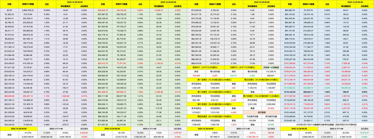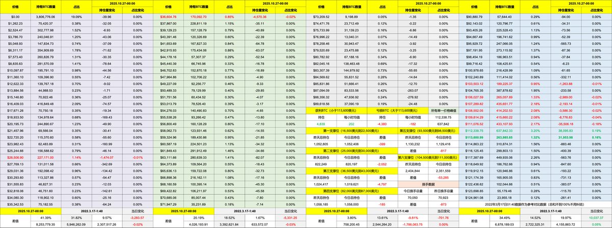 回到 Bitcoin 的数据来看,今天的换手率和周一几乎是一致的,即便是 $BTC 的价格出现了一些回撤,也并未引发太大的恐慌情绪,毕竟没有看到实际的利空信息,所以我自己从 106,000 美元开的多单还在继续拿着,116,000 冲破几次都被打回来了。