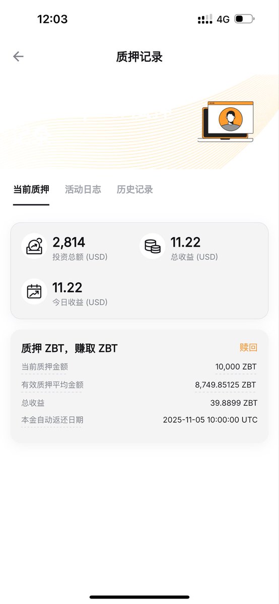 可惜留着都已经留着了。就积极的参加一些活动增加币本位的数量,减少一些“损失”,就是考虑到了上币策略知道要散出去太多的筹码,所以短期对币价也没有太大的期望,参加了 Bybit 的活动,给了将近 143% 的收益。质押10,000枚 ZBT 给了 40枚的收益,应该是每天的吧。