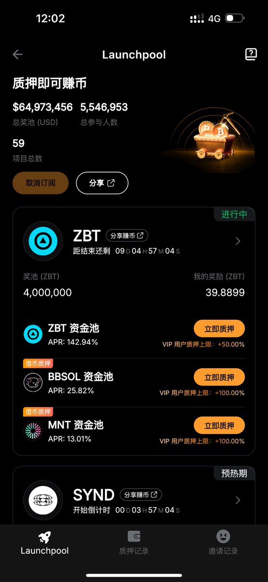 因为一些麻烦👿的原因我在 Bybit 不是VIP 所以只能质押 10,000 枚,VIP 可以多质押 5,000 枚,收益应该是60 枚 ZBT 一天,虽然收益是蛮高的,还是但心这么多的空投可能会带来更大的抛压,大概一周多后还有 Binance Booster 第二期的空投,也不少。