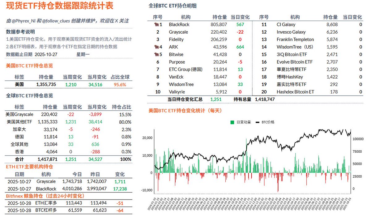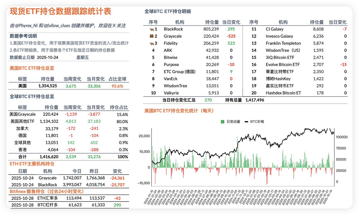 周日的作业更简单一些,今天最重要的应该就是中美洽谈的一些进展了,起码从目前双方公布的一些信息来看,最起码11月1日给中国155%的关税应该就会延期了,这对于市场来说应该能松口气了,直接带动 $BTC 价格在周末上涨了将近 2,000 美元。