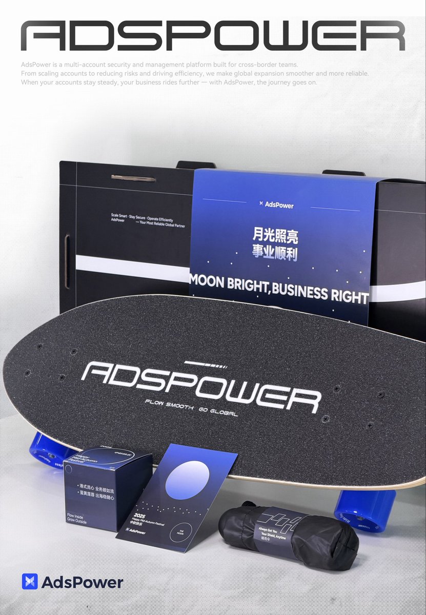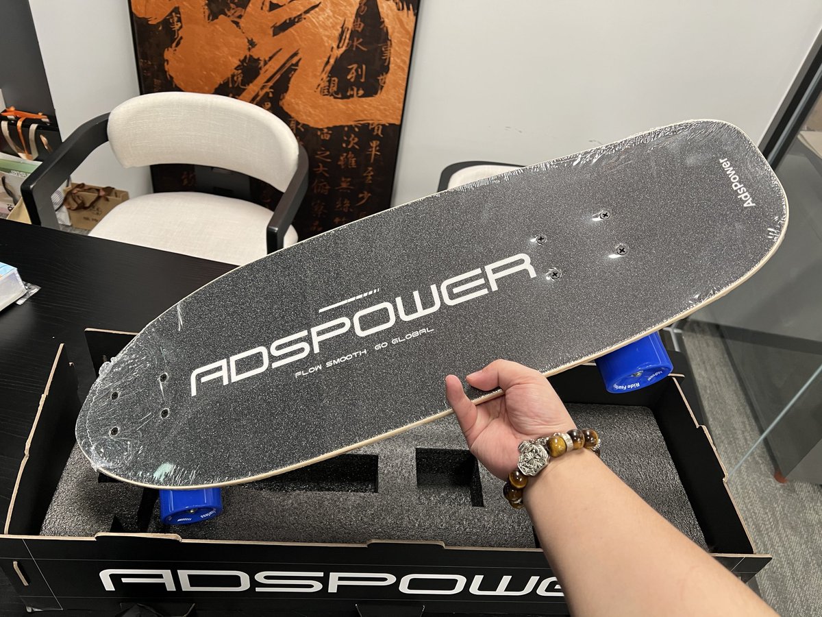 上次从新加坡回来,办公室一堆中秋周边,最大最沉的就是 @adspowercn 的滑板了,可惜我不会滑~纯当摆件了🤣