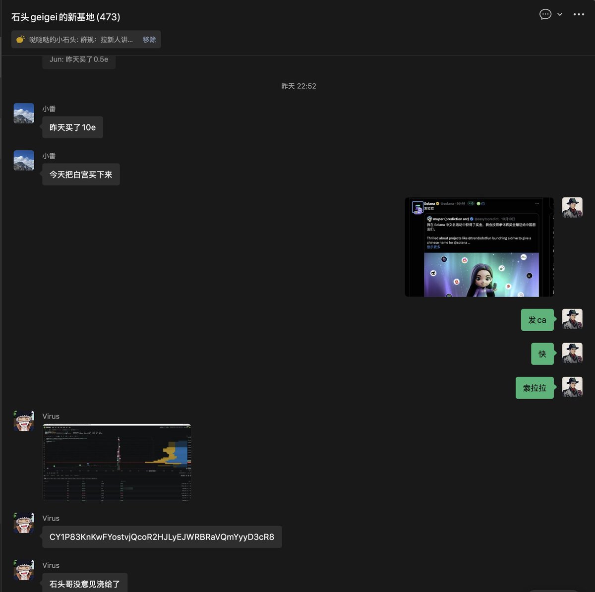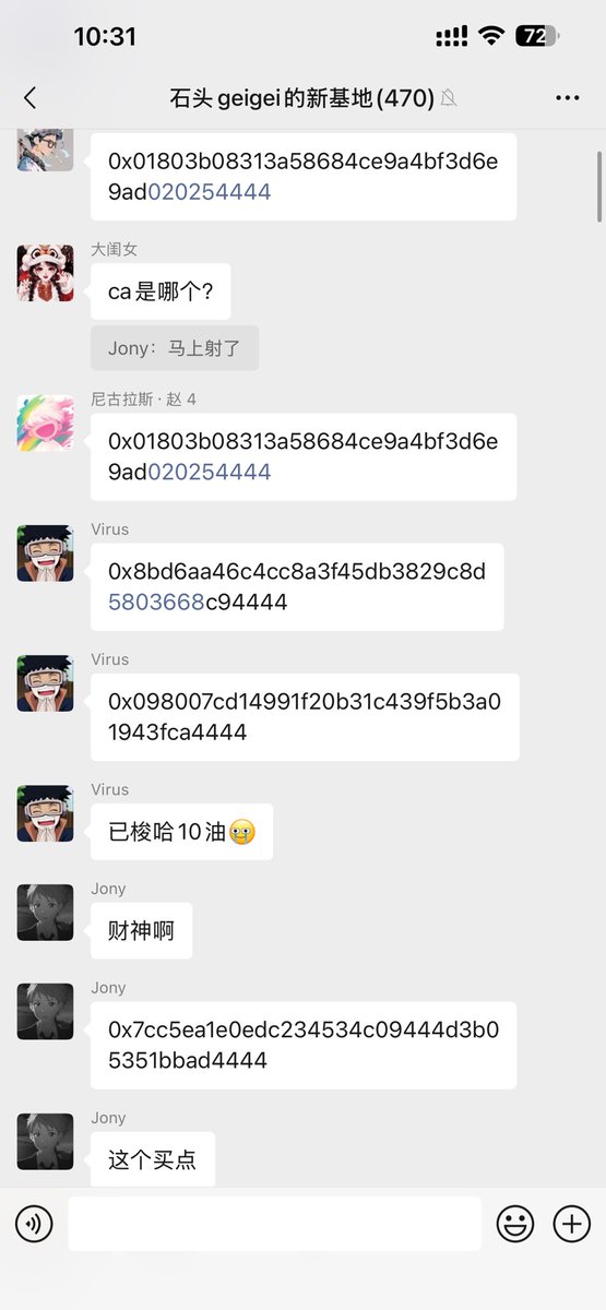 我群里的那帮撸毛崽们,现在平均30秒一个ca,真的是彻底疯狂了。🥲