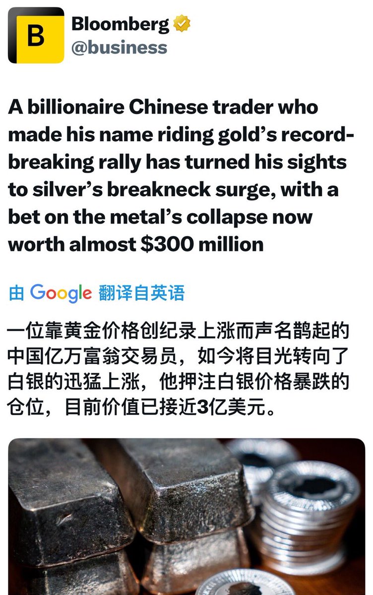 中国一个交易员,做黄金赚了30亿美元,又转头做空白银,目前又赚3亿美元! 不知道本金是多少?这么猛