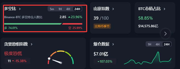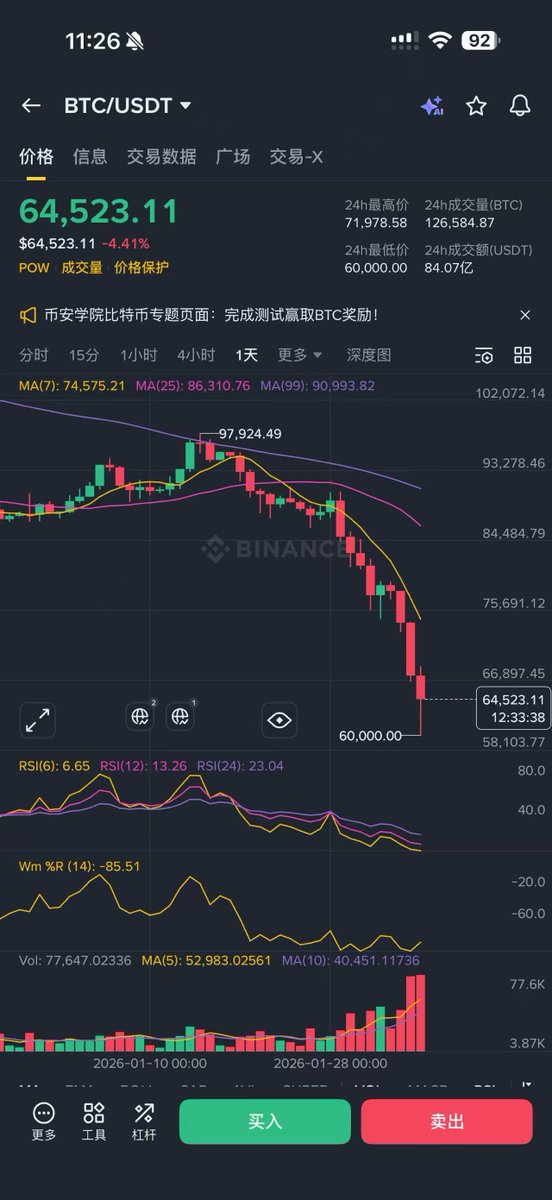 90%以上全是悲观情绪,BTC月线99支撑在83k的位置,今天是1月的最后一天,这种情况容易出现再次下插针后的爆空情况,我觉得可以等周日下午6点后再去看,如果有反弹并且不过85k 随便做空