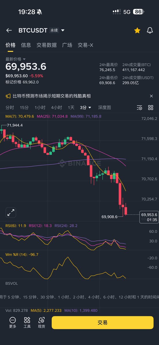 昨天我看不少人已经开始接现货飞刀了!要我说现货可以买点,但中途一定会被套 71k-68k 可能才是本次的终极目标 做好仓位规划买现货,就别玩合约了