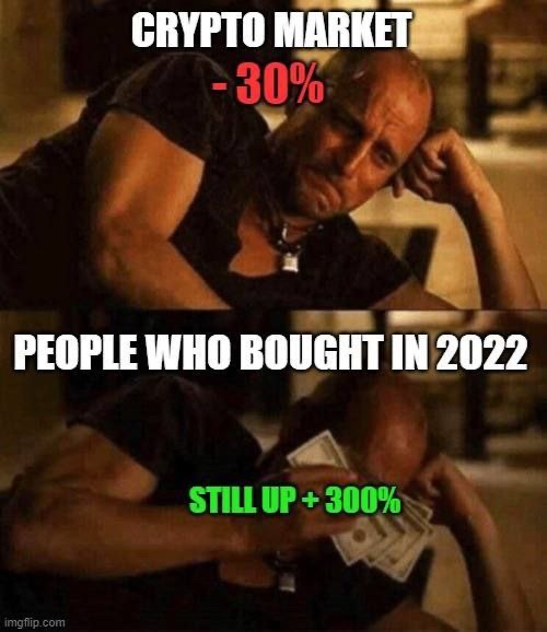 我:我不在乎加密货币市场是否会抛售更多,我只会继续囤积。 还有我: