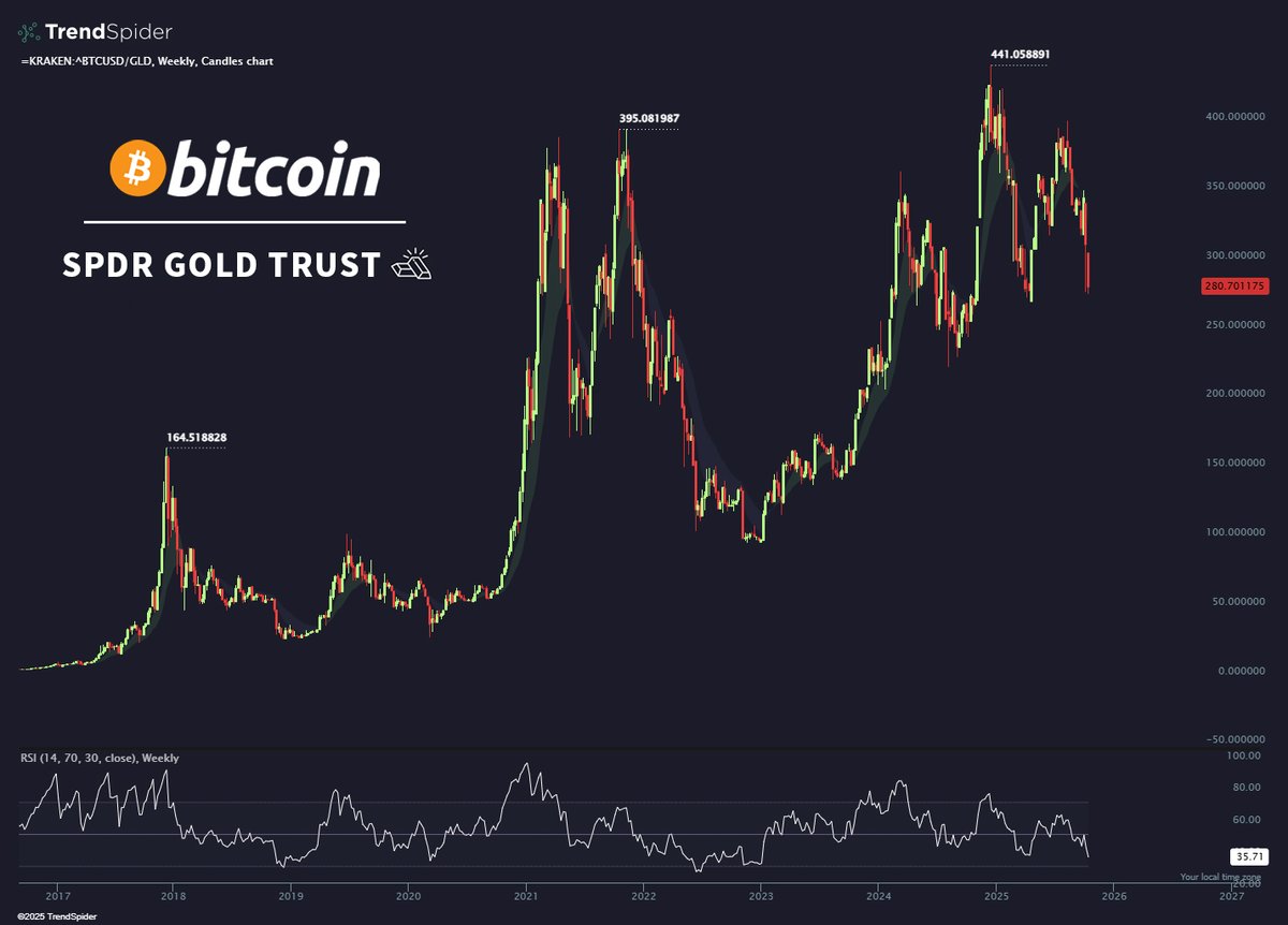 For all the gold bulls flexing on bitcoin right now... Try zooming out. $BTC / $GLD https://t.co/coxVyJEKcJ