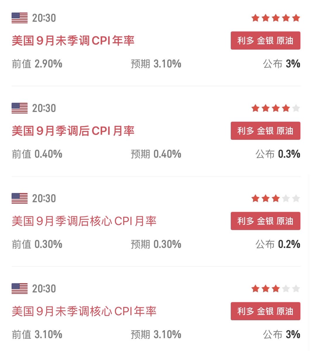 2、周五美国cpi、核心cpi 月率、年率全部好于预期