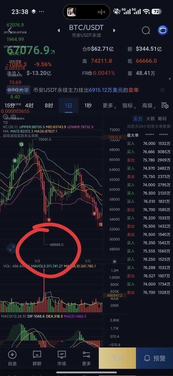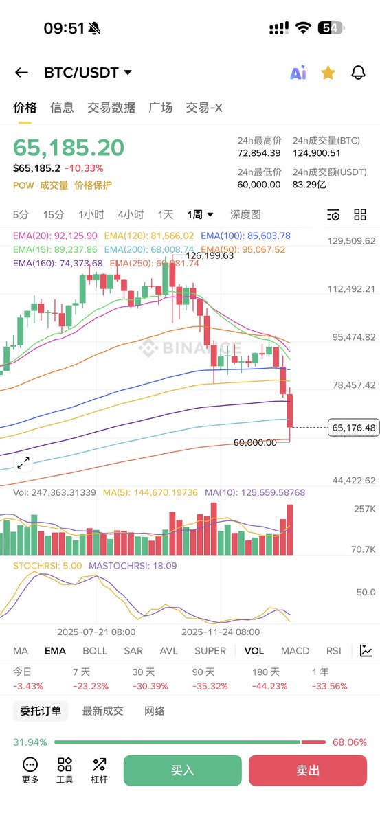 真的是“春劫行情”了,大饼就这样一点点钝刀子割肉下探消磨人的耐心,虽然还差100来u没破7,但真的还是看不到底部结构和抄底资金进场,唯一可以指望的可能就是插针上轮大牛前高69000后快速收回。如果69也彻底跌破,可能就要朝着65去了。