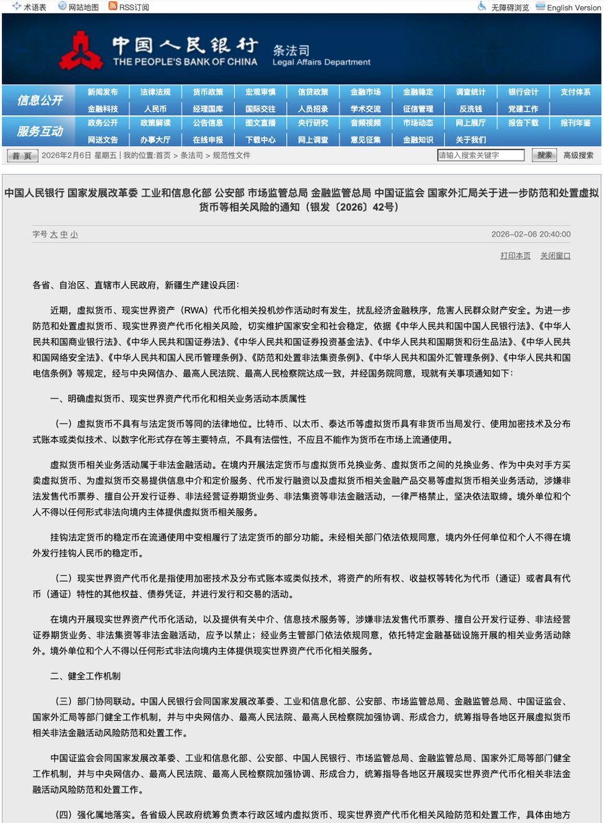明确了人行负责牵头虚拟货币风险处置;证监会负责牵头RWA代币化风险处置的分工。