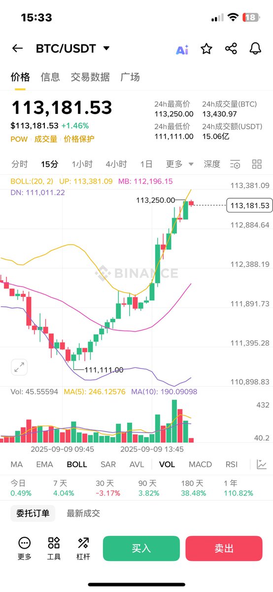 那综合来看比特币在下周四降息前都能保持强势,可以逢低做短线多单,只有到较大的阻力我才会空一手,接下来我会关注114000和116000的阻力