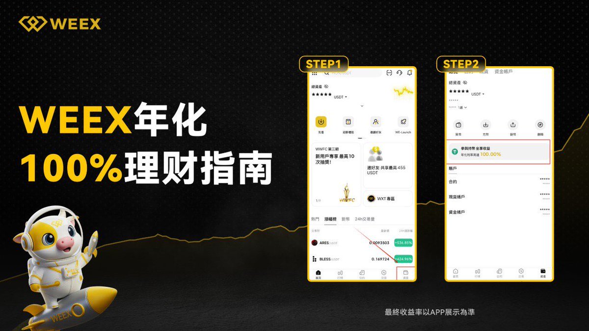 老铁们WEEX 新推出的“持币生息”,新人最高年化达到了100%!