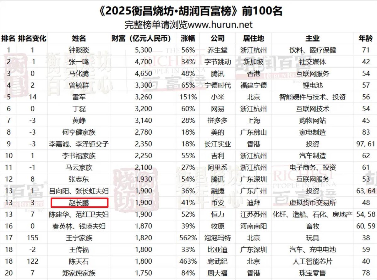 胡润百富榜Web3首富CZ 赵长鹏 💥