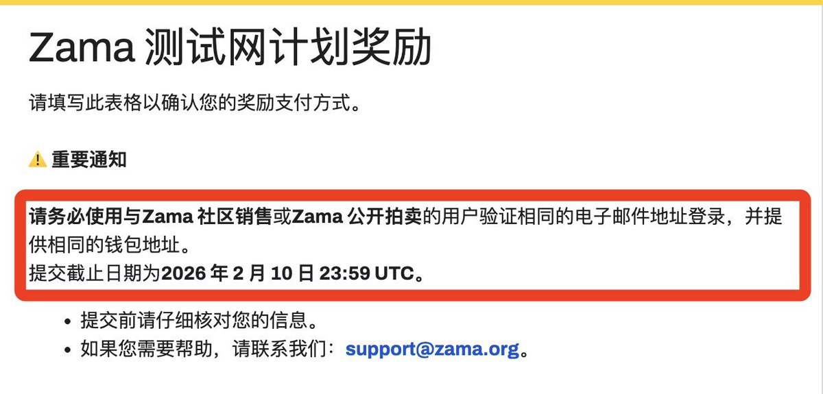 1、ZAMA @zama 大家记得去填表提交领取测试网奖励,填表选择给u或者代币,截止时间是2月10号