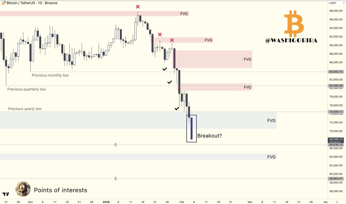 #Bitcoin BTC is nearing a key zone. I'm not saying the bear market bottom is in. Just following my framework. I wasn't dogmatic at the top calling for higher, I won't be dogmatic near the bottom calling for lower. 2026 will be very interesting. Market is always right. We https://t.co/IdVKDxOF1O