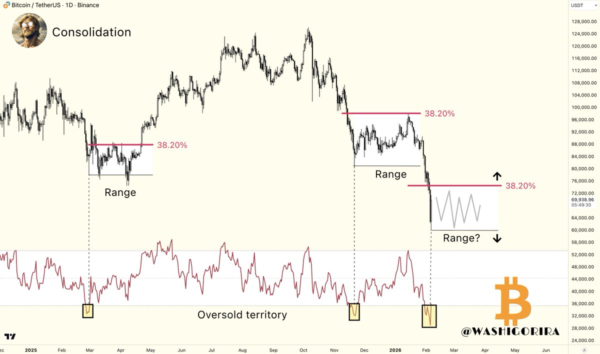 #Bitcoin - What's next? After the flush, price is likely to consolidate between 60k-74k for a few weeks or even months before the next major move. https://t.co/2NKf0ze38W