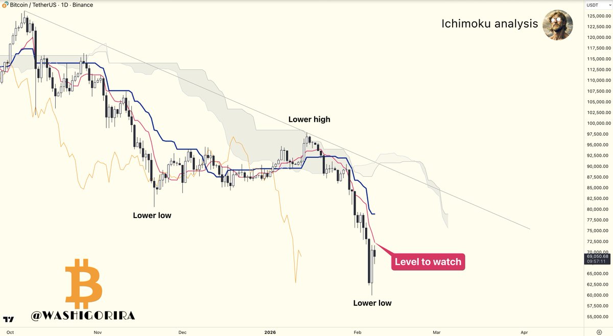 #Bitcoin Bounce 💥 Almost all my targets got hit: – 66.9k ✔️ – 64.8k ✔️ – 59k ⏳ A technical bounce is no surprise after such a drop. 70k–74k retest makes sense. No guarantees. https://t.co/40TuVjo5li