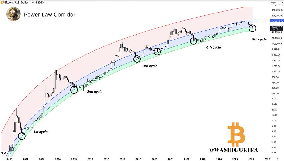 #Bitcoin just tapped the green band of the Power Law Corridor. Historically, this area tends to mark the start of long-term accumulation. https://t.co/XlHf3HEGF8