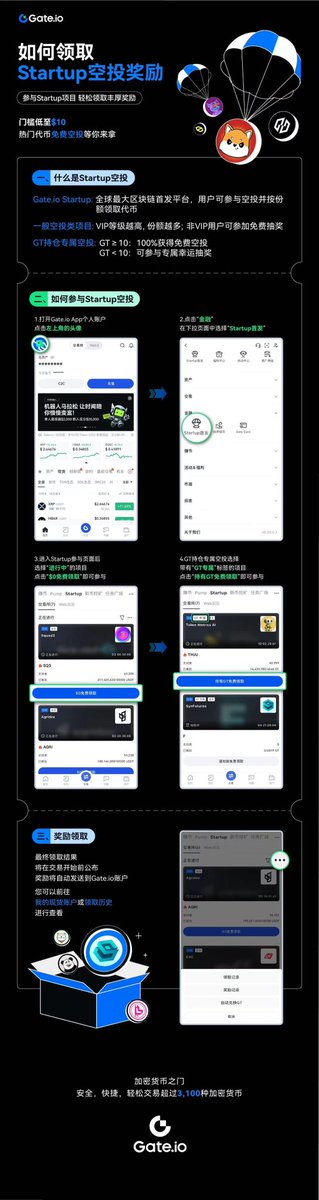 https://t.co/QKWki0a1g4 目前Startup板块已经给GT用户空投了价值1.2亿美金的代币,上一期刚空投了100万美金,还在持续进行。$GT 持有者可以轻松地参与低价格高潜力的项目,空投的Startup新币还可以参与平台挖矿。详情在图4👇🏻