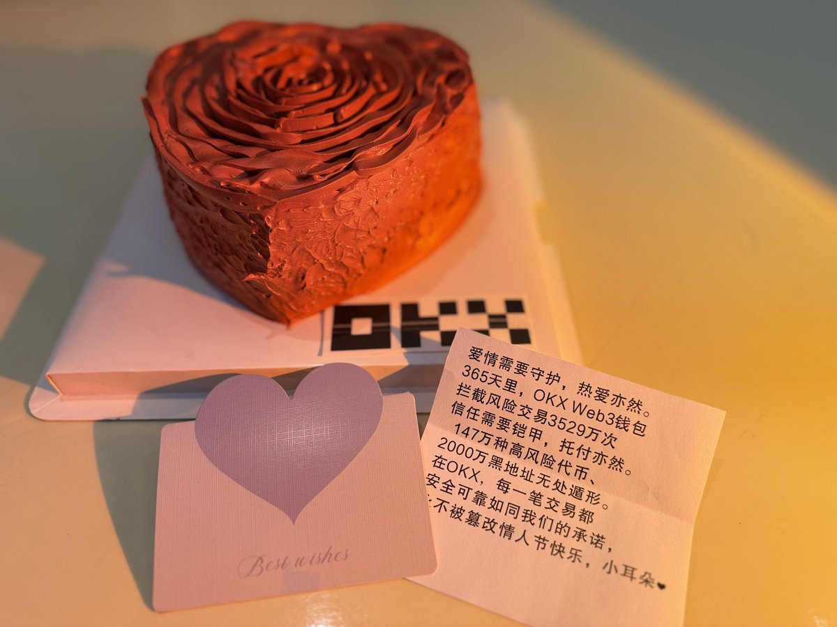 情人节不孤单 因为@okxchinese 和@mia_okx 的爱心蛋糕 太暖单身朵的心了🥹 好吃的!炫了一半哈哈~也感谢邀请参与共识大会 期待😊