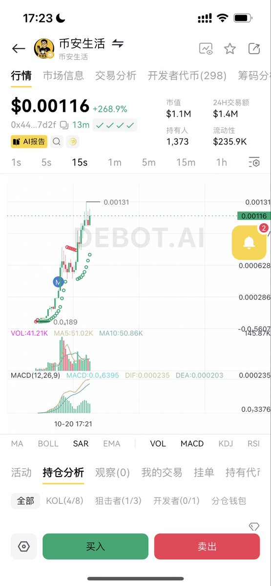 新台子早点参与,早上我买的 $hodl 也是轻松上十倍,早上的几个币都有翻倍,真实感受到一波小风口的力量✊