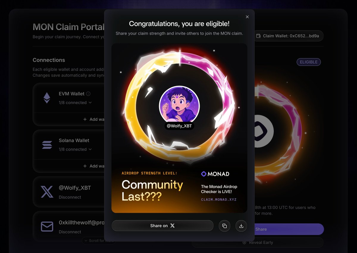 太好了,我也有 @monad 的空投,还是最高级别的,听说分成了 6 个等级: