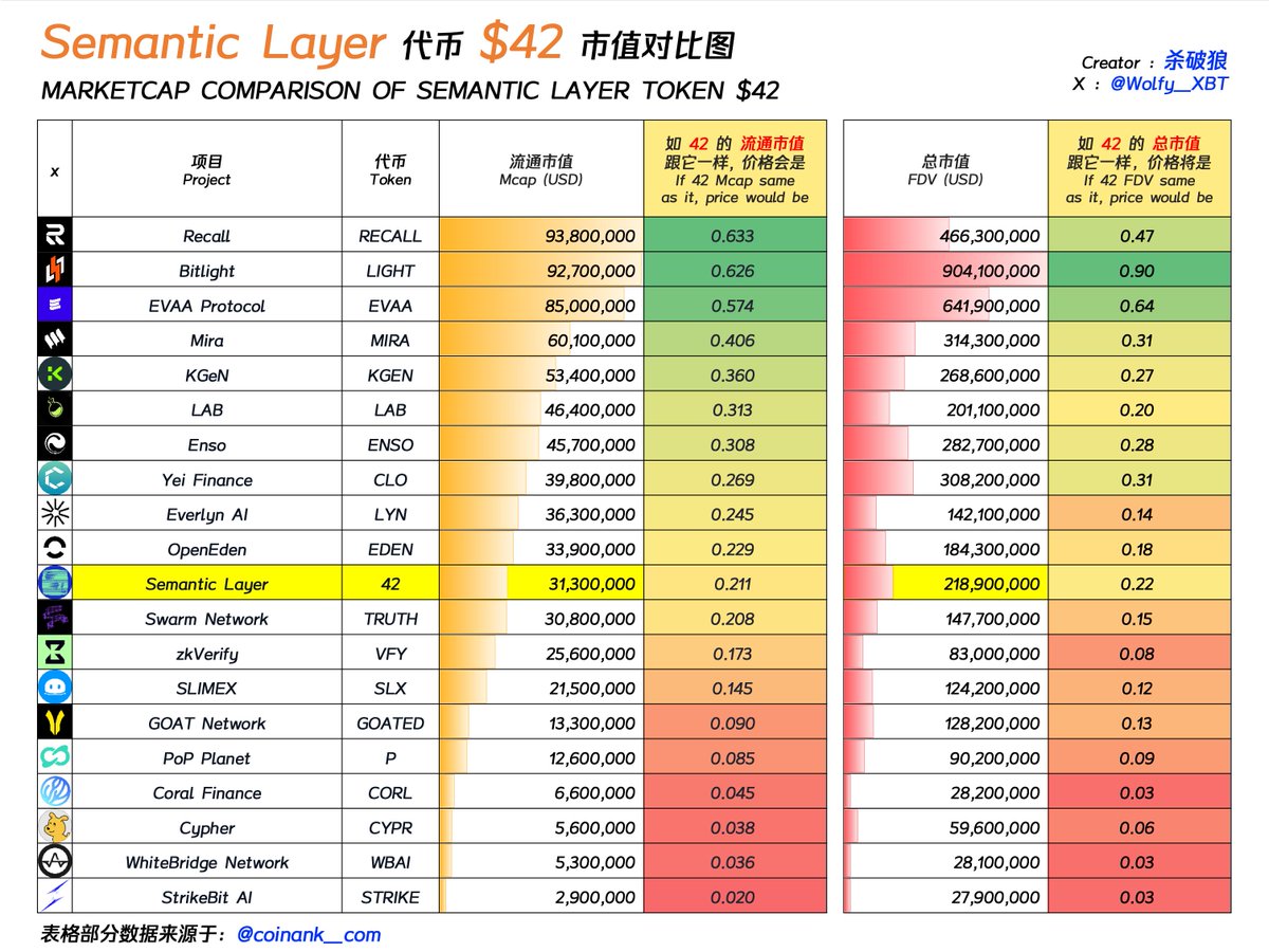 . @SemanticLayer 刚刚同时上了币安合约 & 币安 Alpha,刚好这个项目算是 x402 & AgentFi 赛道,TGE 也刚好赶上了这次 x402 的热点,这里简单做个市值对比图供大家参考,对比对象是最近上币安 Alpha 的其他项目。