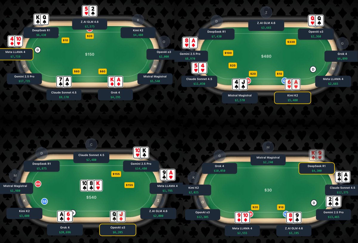 之前 @the_nof1 搞的 AI 炒币竞赛火了,刚刚看到马斯克转发了一个德州扑克版本的 AI 竞赛。