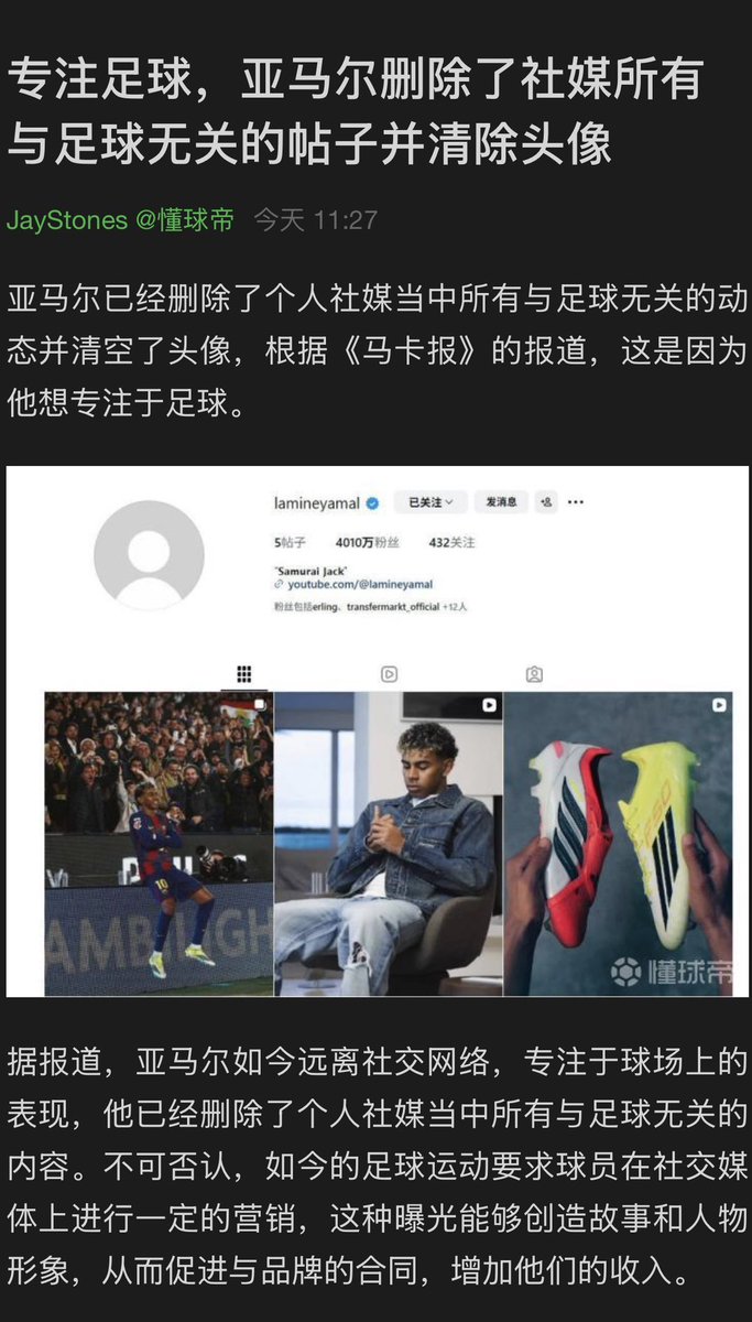 亚马尔社媒删除了所有与足球无关的内容 小孩哥一夜之间要长大了吗?(ಥ_ಥ)