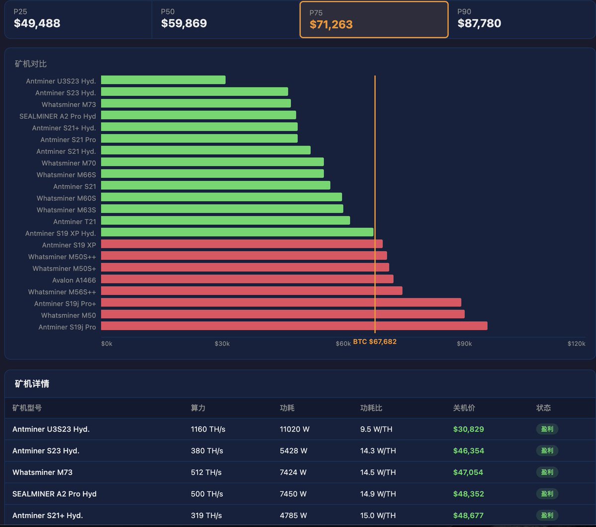 法克 比特币 提供的数据:8 款机子已经进入关机价格了。