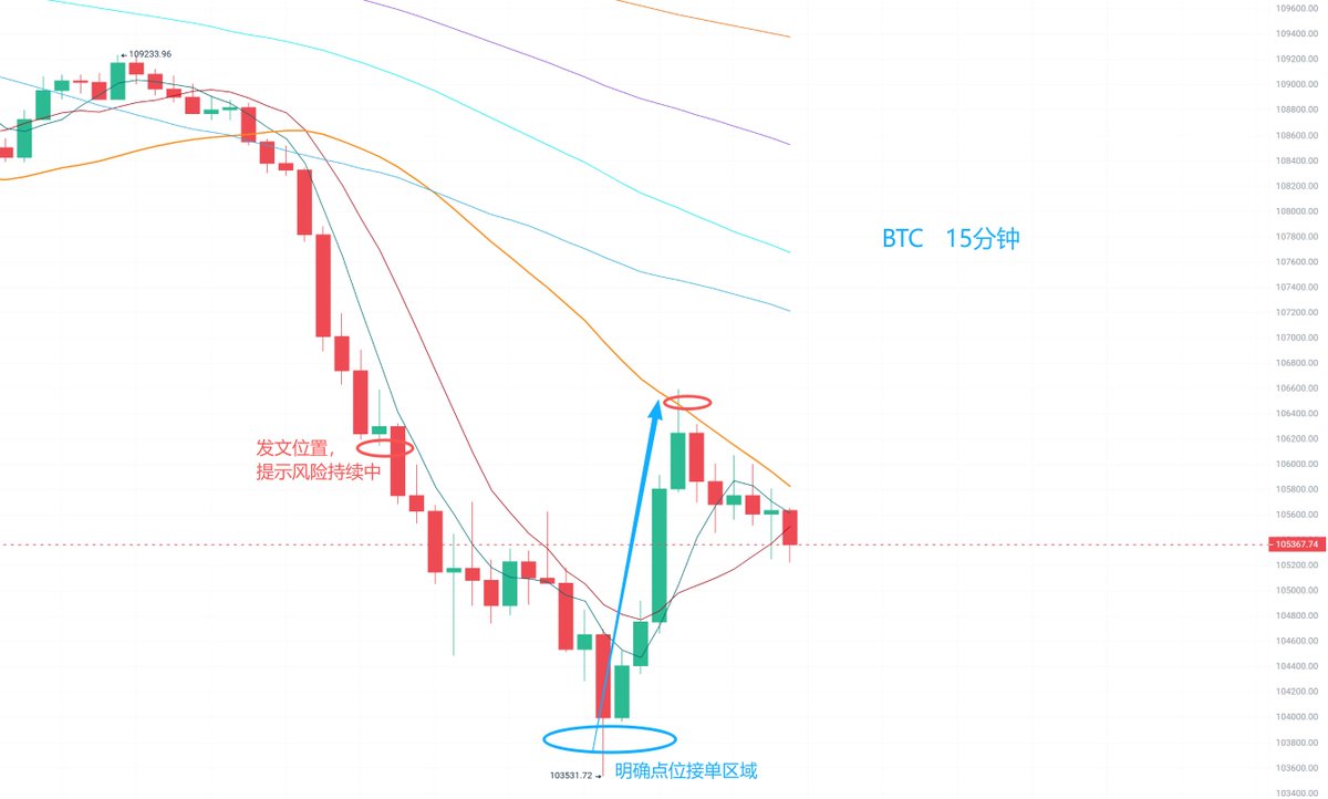 三、4H及以下级别存在局部多头结构,回踩过程中符合生命线战法的点位自行盯盘操作(参考109600)。#BTC