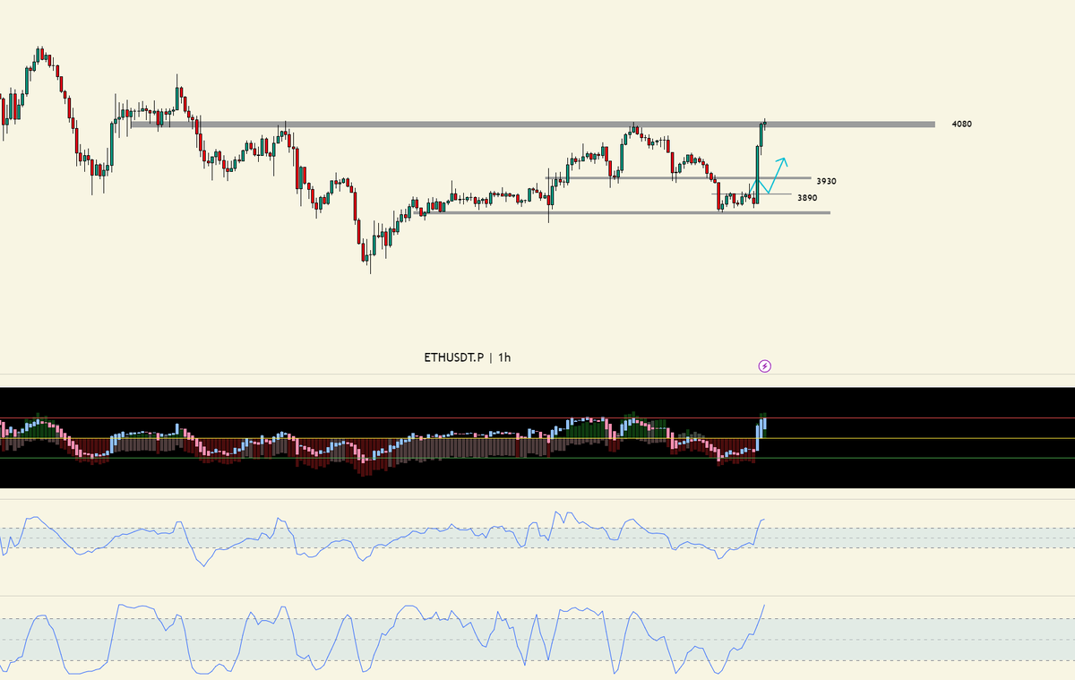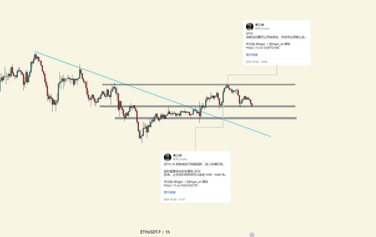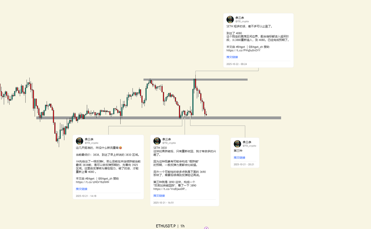 昨天 $ETH 在 3955-4080 做了个还不错的短波。
