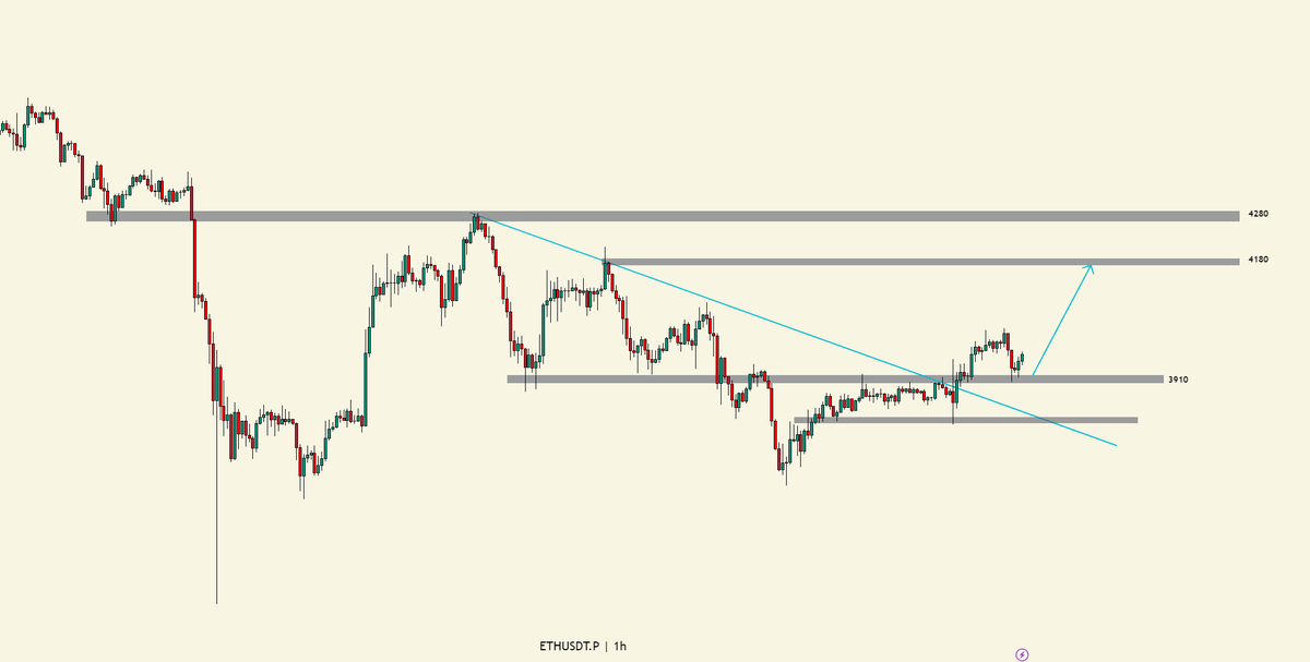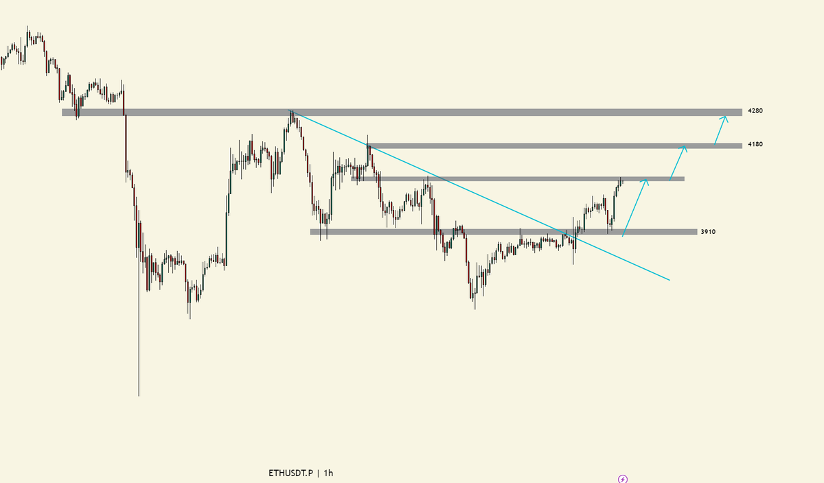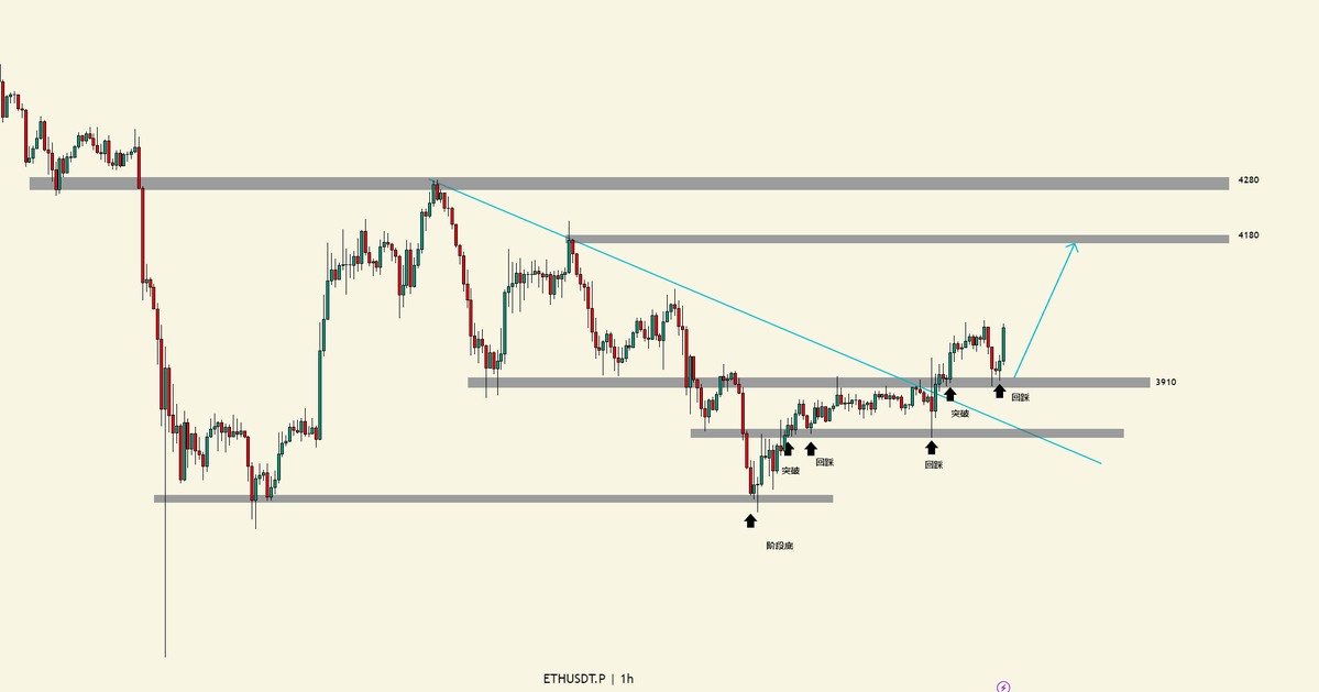 个人是觉得 $ETH 这里,就算在 4080 区域受阻下跌的幅度也不会大。